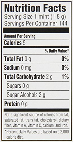 Contains only 5 calories per serving size (1 mint).