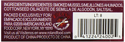 Smoked mussels are packed in cottonseed oil and are cherry wood smoked
